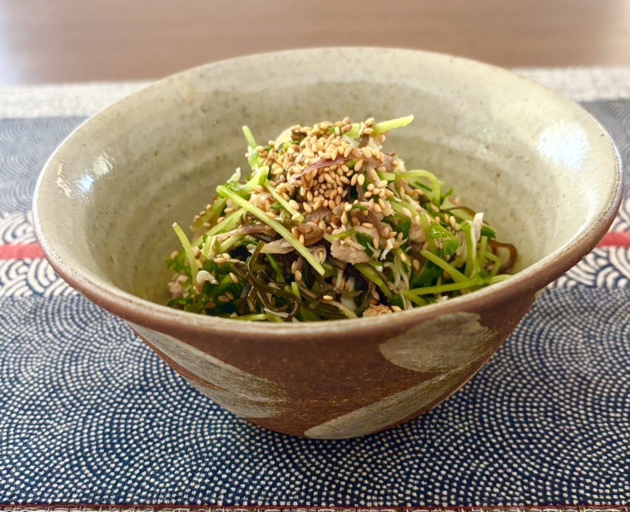 4.ごま油、鶏ガラスープ顆粒、ごまを加えて全体をよく混ぜたら出来上がりです。